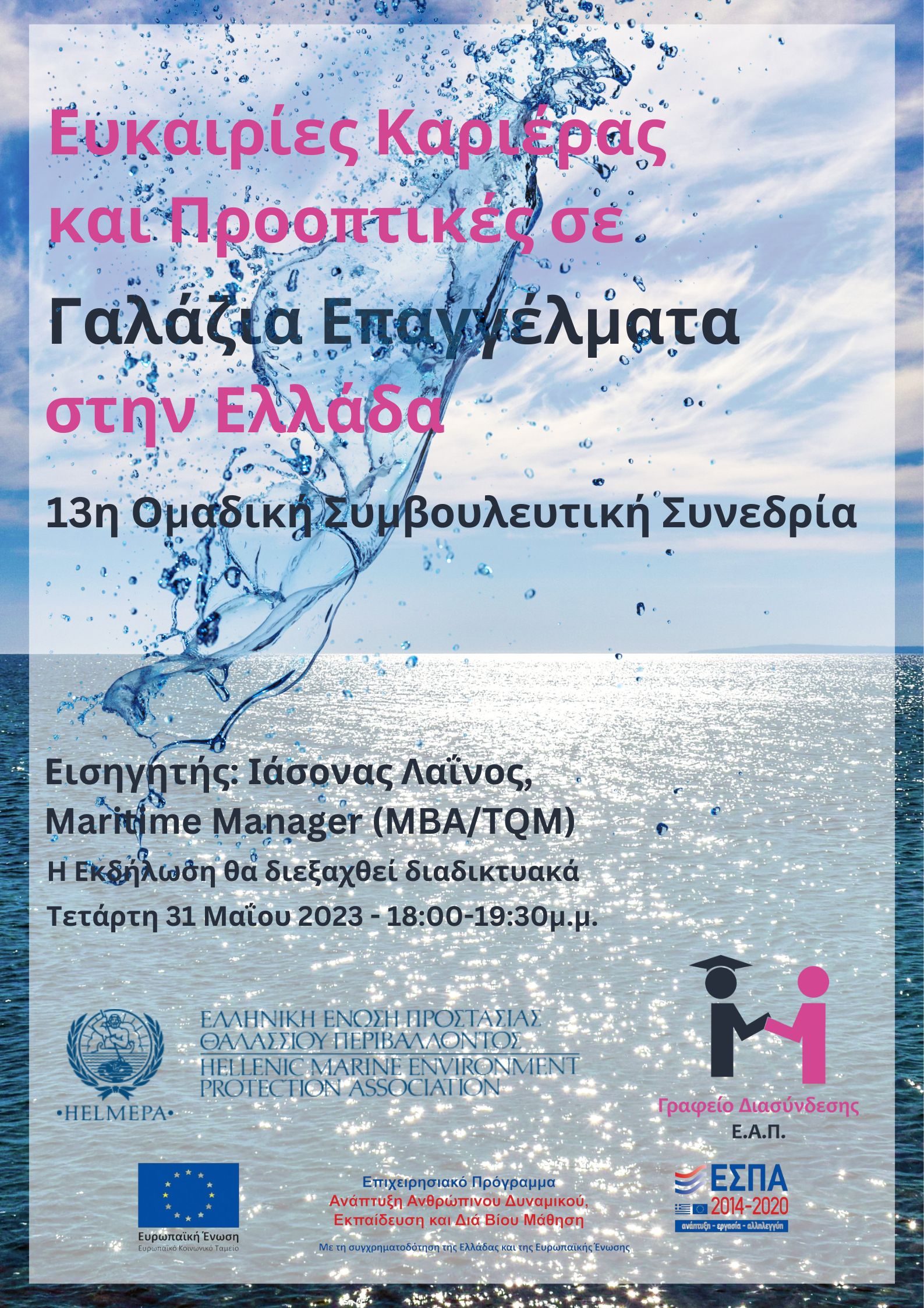 Διαδικτυακή συνεδρία 14-06-2023 με θέμα «Ευκαιρίες Καριέρας και Προοπτικές σε “Γαλάζια Επαγγέλματα” στην Ελλάδα» Γραφείο Διασύνδεσης ΕΑΠ-HELMEPA